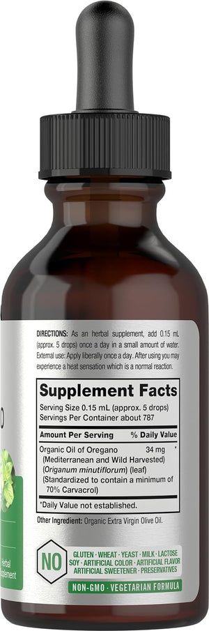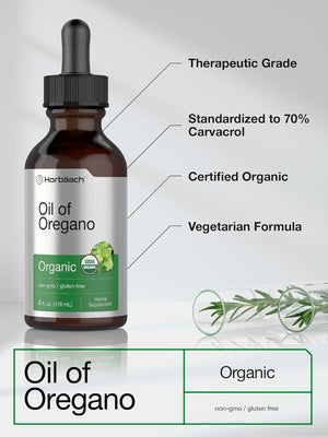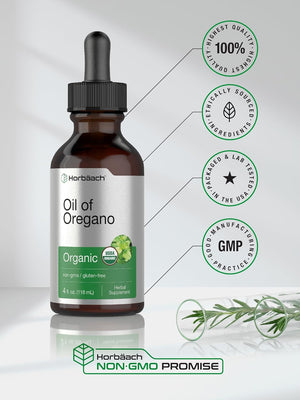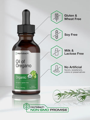 ¡Experimenta el aceite orgánico de orégano! Nuestra fórmula avanzada ofrece 34 mg de aceite orgánico de orégano por porción en convenientes gotas líquidas para un apoyo premium. Se deriva de la hoja de la planta Origanum minutiflorum y está diseñado para adaptarse a un estilo de vida vegetariano. El aceite orgánico de orégano Horbaach no es transgénico y está hecho sin color, sabor o edulcorante artificial, un suplemento de alta calidad para adultos que buscan apoyo adicional de esta poderosa hierba.