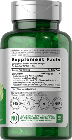 ¡Experimenta el aceite de orégano de Horbaach! Nuestra fórmula está científicamente diseñada para ofrecer el equivalente a 4,000 mg de aceite de orégano por porción en cómodas cápsulas blandas de liberación rápida. Derivado de la hoja de la planta Origanum minutiflorum, es libre de gluten y sin OMG, fabricado sin colorantes, sabor o edulcorante artificial, un suplemento de alta calidad para adultos que buscan apoyo adicional de esta poderosa hierba.