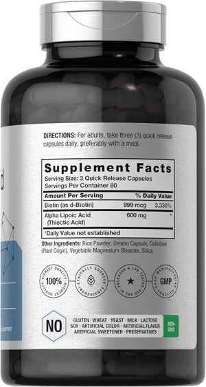 Fórmula de Alta Potencia: Con 600 mg de ácido alfa-lipoico por porción, esta fórmula ofrece una dosis efectiva para maximizar los beneficios antioxidantes y metabólicos.