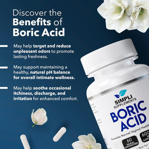 ÁCIDO BORICO SUPOSITORIOS 600 MG 60 CÁPSULAS SIMPLI SUPPLEMENTS
