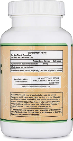 ACIDO HIALURONICO DOUBLE WOOD 200 MG 180 CÁPSULAS NO GMO HYALURONIC ACID
