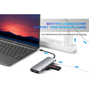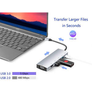 Diseño 6 en 1 y gran expansión: 3 puertos USB 3.0 estándar; 1 puerto HDMI y 1 puerto de salida de vídeo VGA que transfiere medios en segundos con efecto 3D; 1 conector de carga de suministro de alimentación USB - C, soporta el funcionamiento de carga completa de la interfaz sin presión, la expansión de interfaz multifuncional permite que el MacBook se deshaga de las restricciones de la interfaz.