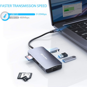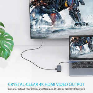 Te permite duplicar o extender el tipo de portátil C a un HDTV, monitor o proyector. Este concentrador soporta salida VGA y HDMI simultánea. Puerto HDMI y VGA compatible con resoluciones de hasta 3840 x 2160 @ 30 Hz y 1920 x 1080p @ 60 Hz, respectivamente.