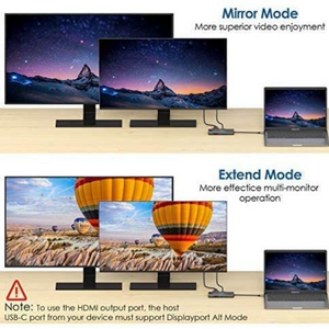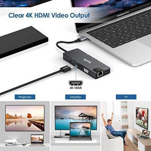 Base Thunderbolt 3 a HDMI: extienda su Macbook a un televisor con HDMI en Max 4K UHD 3840 × 2160 a 30Hz o pantalla VGA en hasta 1080P a 60Hz Full HD. Cuando los puertos de salida HDMI y VGA funcionan simultáneamente, la pantalla SOLO se duplicará y NO se extenderá, pero la resolución máxima de ambos puertos es 1080P