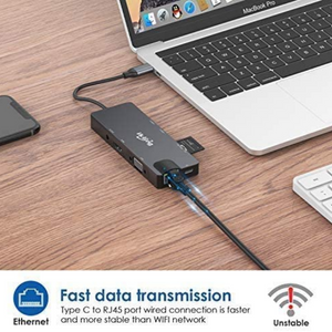 Puerto USB C a RJ45 1000M Ethernet: la base USB C admite puerto Gigabit Ethernet, compatible con versiones anteriores con LAN RJ45 de 100 Mbps / 10 Mbps. El puerto Gigabit Ethernet garantiza una conexión de red por cable más estable y rápida