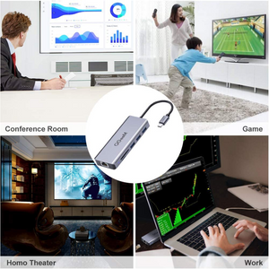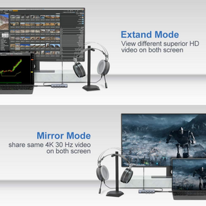 Base Thunderbolt 3 a HDMI: extienda su Macbook a un televisor con HDMI en Max 4K UHD 3840 × 2160 a 30Hz o pantalla VGA en hasta 1080P a 60Hz Full HD. Cuando los puertos de salida HDMI y VGA funcionan simultáneamente, la pantalla SOLO se duplicará y NO se extenderá, pero la resolución máxima de ambos puertos es 1080P
