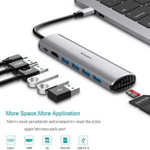 Concentrador USB C 8 en 1: adaptador USB c compatible con MacBook pro, funciona para los últimos dispositivos MacBook Pro o USB-C con un puerto de carga USB C, un puerto HDMI 4K @ 30Hz, un lector de tarjetas SD / TF, 4 USB 3.0 puertos