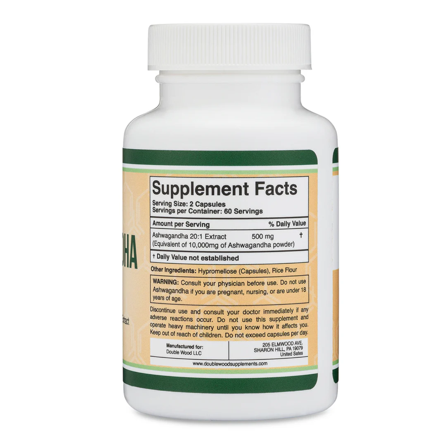 ASHWAGANDHA 500 MG DOUBLE WOOD SUPPLEMENTS 120 CÁPSULAS NO GMO