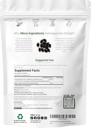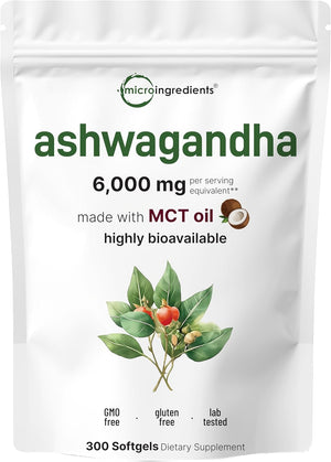 ASHWAGANDHA 6000 MG MICROINGREDIENTS 300 CAPSULAS BLANDAS NO GMO SIN GLUTEN