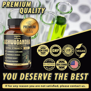 ASHWAGANDHA EXTRA FUERTE 4800 MG + RAIZ DE CURCUMA 185 MG + RAIZ DE RODIOLA 100 MG 180 CASPULAS VEGANO AGOBI