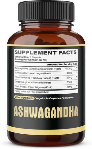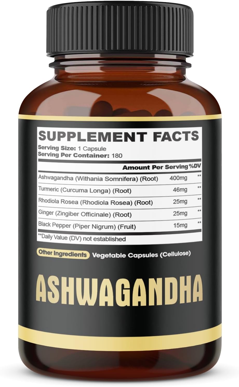 Una mezcla a base de plantas con ingredientes de primera calidad: la raíz de Ashwagandha está compuesta con raíz de cúrcuma, raíz de rodiola, raíz de jengibre y pimienta negra.