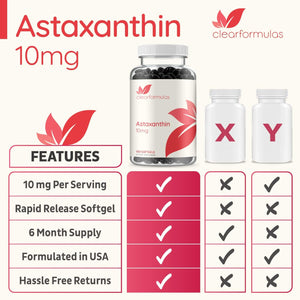 ClearFormulas Astaxantina 10 mg – Máxima Potencia Antioxidante para la Salud Ocular y Cutánea – 180 Cápsulas Blandas