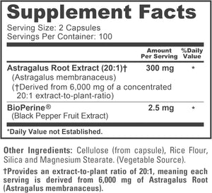 - Cápsulas orgánicas de astrágalo con 6,000 mg por porción