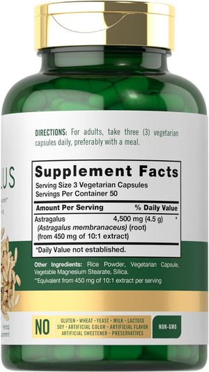 ¡Aprovecha el poder de la naturaleza con Carlyle Astragalus Root! Este poderoso suplemento proporciona el equivalente a 4500 mg de raíz de astrágalo (Astragalus membranaceus) por porción en cápsulas vegetarianas. Las formas más comunes de astrágalo incluyen: hojas de té secas, píldoras, cápsulas, tabletas, polvo a granel, aceite esencial, gomitas, líquidos, crema y otros productos a base de hierbas. Nuestra fórmula vegetariana no contiene gluten ni OMG, lo que la convierte en el complemento perfecto para cualquier régimen de suplementos.