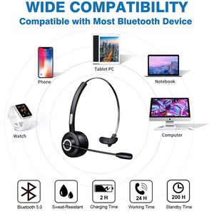 Conexión rápida y compatibilidad universal: los auriculares Bluetooth V5.0 proporcionan un entorno de llamada estable para ti, y emparejamiento rápido con teléfono celular, tableta y computadora. Compatible con la mayoría de dispositivos habilitados para Bluetooth.