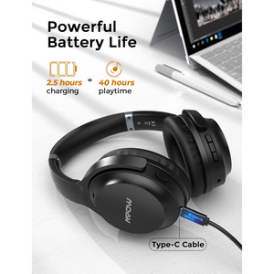 TIEMPO DE REPRODUCCIÓN DE 40 HORAS: una sola carga durante 2 horas con un cable tipo C le brinda hasta 40 horas de reproducción con ANC apagado y hasta 30 horas de reproducción con ANC encendido. No es necesario preocuparse por el problema de la escasez de energía en un viaje largo. Nota: apague ANC para evitar el consumo de energía si los auriculares no están en uso.