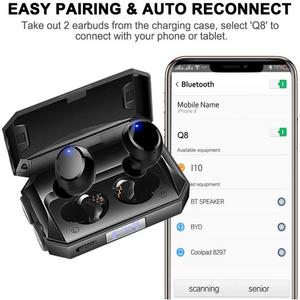AURICULARES INALÁMBRICOS BLUETOOTH 5.0 MUGO Q8 CON MICROFONO IPX7 TWS DEPORTIVO