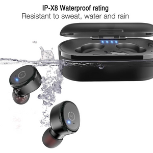 IPX8 a prueba de agua]: los auriculares y el estuche de carga interno de Nano-revestimiento permite impermeabilizar durante 1 metro de profundidad durante 30 minutos. Es adecuado para deportes para evitar el agua. Ideal para sudar en el gimnasio. Incluso lave los auriculares y la base.