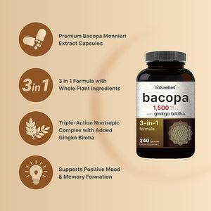 BACOPA MONNIERI NATUREBELL 1,500 MG CON GINGKO BILOBA 20 MG 240 CAPSULAS