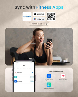 Aplicación fácil de usar. Descargue la aplicación RENPHO en la tienda de aplicaciones o google play, también ofrece la aplicación Apple Watch. La aplicación RENPHO funciona con Bluetooth 4.0 y superior.