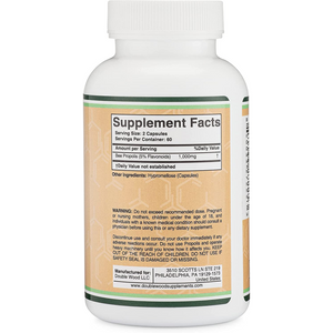 El propóleo de abeja es un material similar a la resina producido por las abejas a partir de las yemas de los álamos y árboles con conos y se utiliza para la construcción y protección de sus colmenas. El propóleo ha sido objeto de miles de artículos científicos y se ha descubierto que contiene una variedad de compuestos beneficiosos que incluyen ácidos fenólicos, flavonoides, diterpenos, aminoácidos y diferentes vitaminas y minerales.