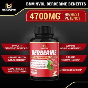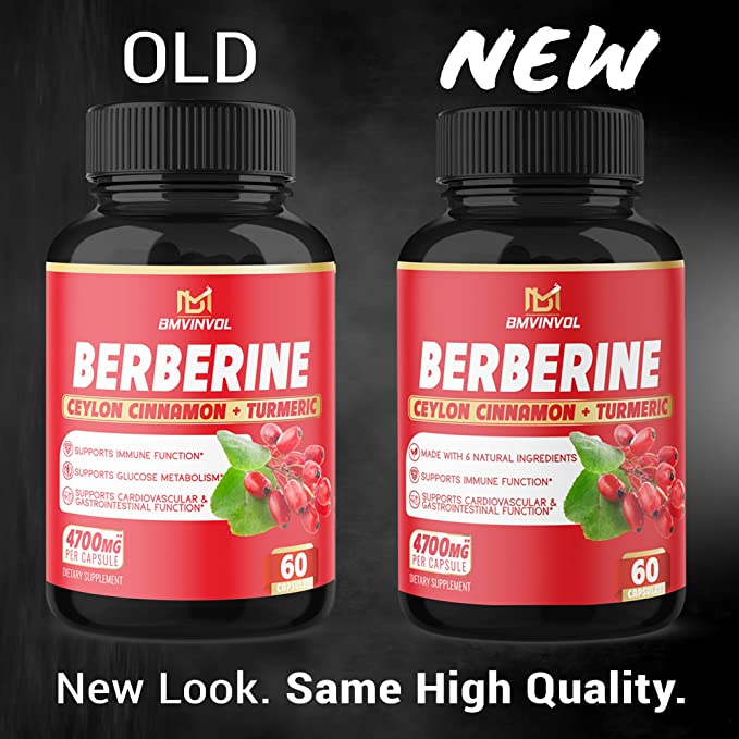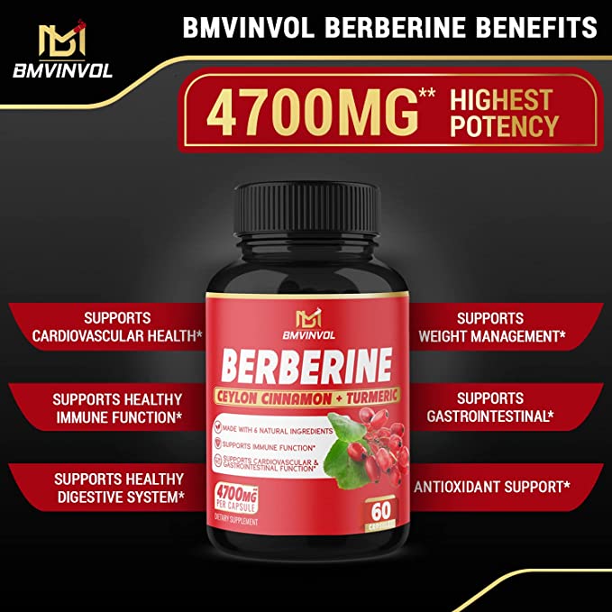 BMVINVOL Fórmula altamente concentrada: extraemos elementos clave de 6 ingredientes de hierbas naturales. Esto significa que una cápsula de berberina se deriva de 4700 mg de polvos de hierbas 60 capsulas suministro para 2 meses!!!