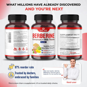 Apoyo Metabólico Completo: Berberina Complex 14 en 1 está diseñado para optimizar tu metabolismo, ayudando a mantener niveles saludables de azúcar en sangre y apoyar la función normal del cuerpo en la regulación de la glucosa.
