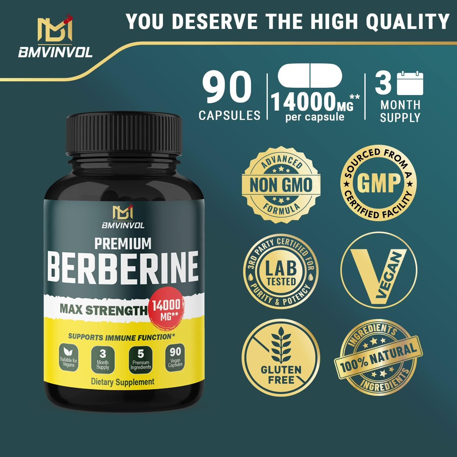 ? Berberina premium: las cápsulas BMVINVOL vienen con 9000 mg de berberina pura 500 mg de canela Ceilán, 1500 mg de cardo lechoso, 1500 mg de cúrcuma y 1500 mg de hoja de alcachofa.