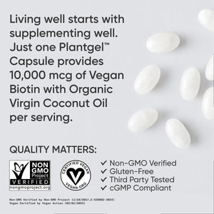 VITAMINA B7 biotin PREMIUM + COCONUT OIL : La biotina, también conocida como vitamina B7, es un micronutriente esencial que interviene en la síntesis de queratina. Nuestras vitaminas Biotin apoyan tu cabello y uñas.Cuentan con 10,000 mcg de esta pieza esencial del complejo de vitamina B con aceite de coco virgen orgánico prensado en frío.