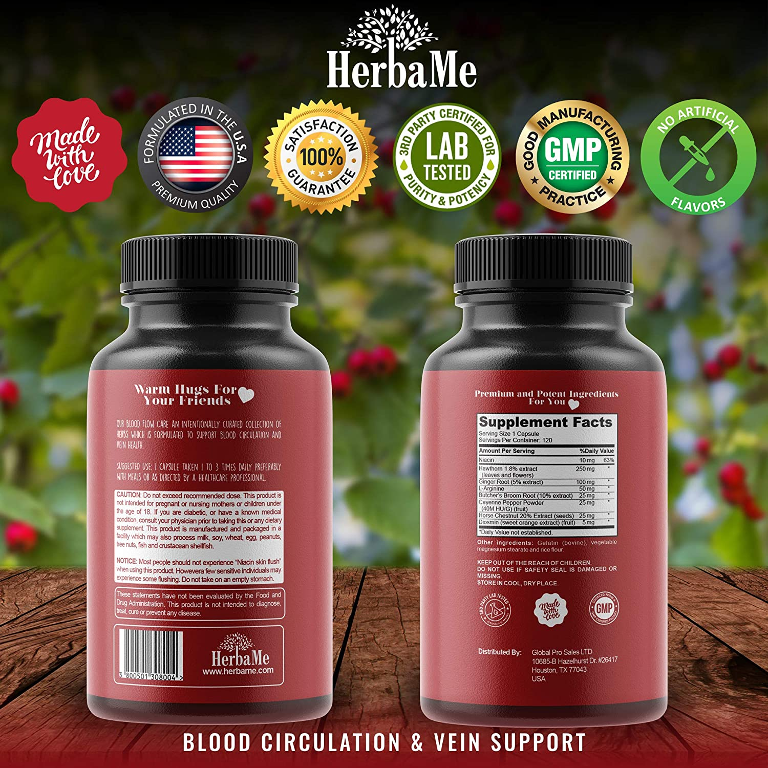 CUIDADO DEL FLUJO SANGUÍNEO CON EXTRACTO DE FLORES 250 MG CON EXTRACTO DE CASTAÑO DE INDIAS 25 MG 490 MG 120 CAPSULAS SIN GMO HERBA ME BLOOD FLOW CARE WITH FLOWER EXTRACT WITH HORSE CHESTNUT EXTRACT