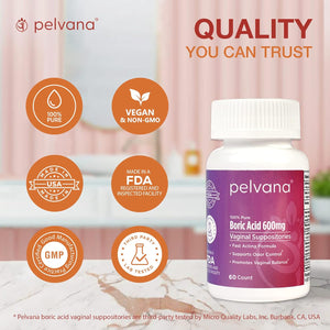 Nuestros supositorios de ácido bórico son 100% puros, fabricados en los EE. UU. en una instalación registrada e inspeccionada por la FDA y probados por terceros. Puedes insertar los supositorios vaginales de ácido bórico con los dedos o con un aplicador de plástico (se vende por separado). El ácido bórico actúa mientras duermes para restaurar la calidad ácida de la flora vaginal para que puedas despertarte sintiéndote fresca.