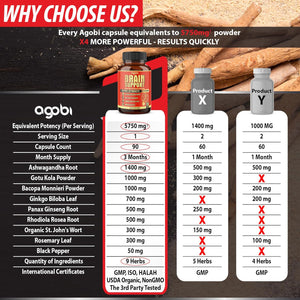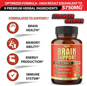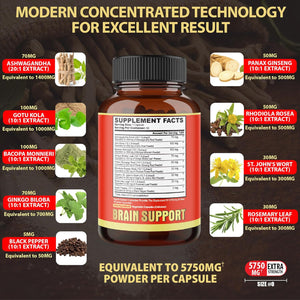 Suplementos cerebrales cápsulas de alto concentrado equivalentes a 5750 mg con 90 cápsulas veganas de suministro de 3 meses. Especialmente, mezclado con Ashwagandha 20:1 combina otras hierbas 10:1 extracto concentrado. Ofrece efectos beneficiosos para la vida ocupada.
