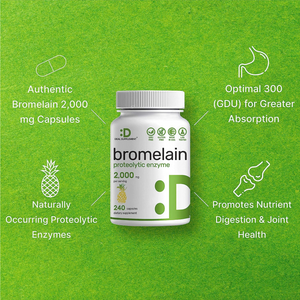 Suplemento de bromelina 2000 mg, 240 cápsulas, dosis óptima (300 GDU/g) para salud digestiva, enzima proteolítica, apoyo a la salud de las articulaciones, antiinflamatorio y descomposición de nutrientes