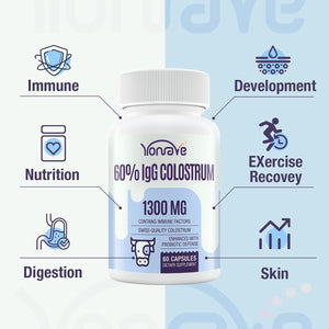 Cápsulas de calostro de 1300 MG: Cada cápsula es rica en inmunoglobulinas, proteínas, vitaminas y minerales, proporcionando una nutrición integral. Y el diseño de dosificación precisa hace que sea fácil de transportar y usar a diario.