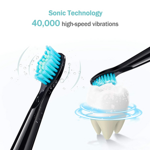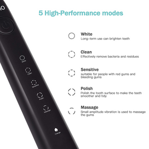 40.000 pasos por minuto y 5 modos de cepillado: la avanzada tecnología de sonido proporciona 40.000 vibraciones de alta velocidad por minuto para eliminar eficazmente las manchas. 5 modos de cepillado de alto rendimiento (blanqueamiento, limpieza, pulido, masaje, sensibilidad) para satisfacer sus diversas necesidades orales y son adecuados para cualquier propósito de cepillado.