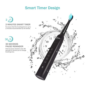 Temporizador inteligente de 2 minutos y batería de larga duración: temporizador integrado con apagado automático de 2 minutos y pausa de intervalos cada 30 segundos que fomenta un hábito de cepillado adecuado. El cepillo es alimentado por una batería de litio segura y duradera que puede durar hasta 30 días de cepillado con una sola carga completa. No te preocupes por llevar tu cargador cuando viajes.