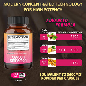 Potencia superior: cápsulas de extracto de Agobi equivalentes a 3600 mg de todos los ingredientes en polvo, especialmente corteza de canela de Ceilán de alto grado 1950 mg. Ofreciendo efectos beneficiosos.