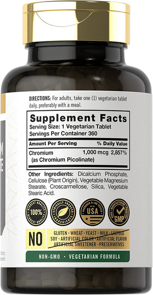 CHROMIUM PICOLINATE 1000 MCG 360 cápsulas 100% vegano carlyle extra potente !!!