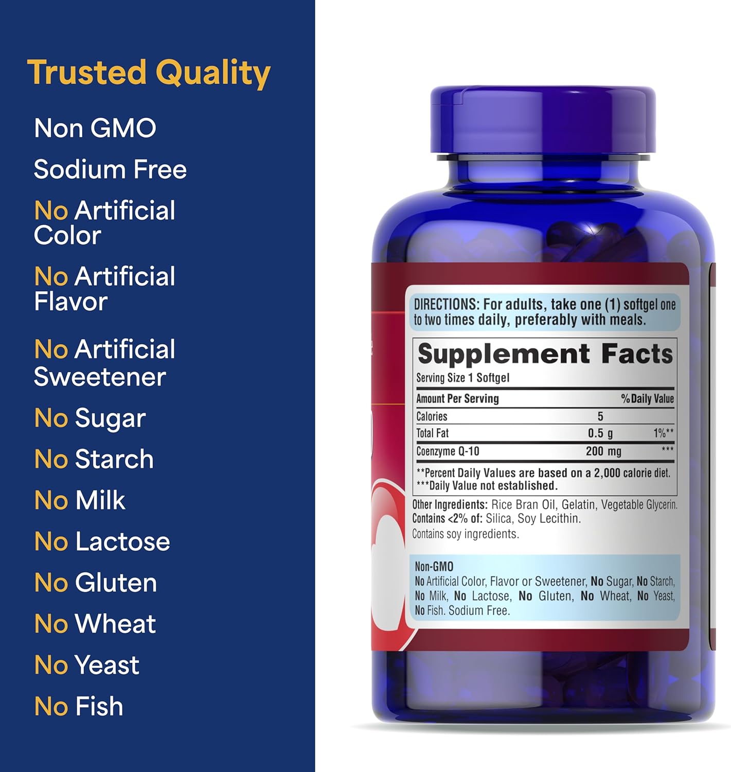 COENZIMA Q10 200 MG UBIQUINONE COQ10 240 CAPSULAS BLANDAS SIN GMO PURITANS PRIDE