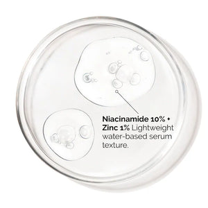 Nuestra fórmula Niacinamide 10% + Zinc 1% es un suero a base de agua que aumenta el brillo de la piel, mejora la suavidad de la piel y refuerza la barrera cutánea con el tiempo. Contiene una alta concentración del 10% de Niacinamida (vitamina b3) y zinc PCA.