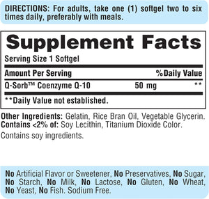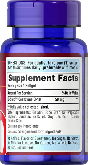COENZIMA Q10 50 MG UBIQUINONE 100 CAPSULAS BLANDAS SIN GMO PURITANS PRIDE