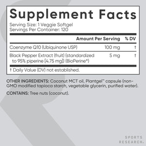 COENZIMA Q10 100 MG UBIQUINOL COQ10 120 CAPSULAS BLANDAS VEGANO SPORTS RESEARCH