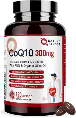Apoya la salud cardíaca: las cápsulas blandas CoQ10 de grado USP de 300 mg de Nature Target son de origen natural, utilizadas por muchas personas para proteger la salud del corazón y mejorar la función cardíaca. Potente antioxidante que te ayuda a proteger las células contra daños.