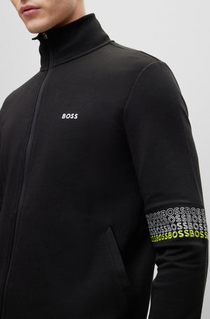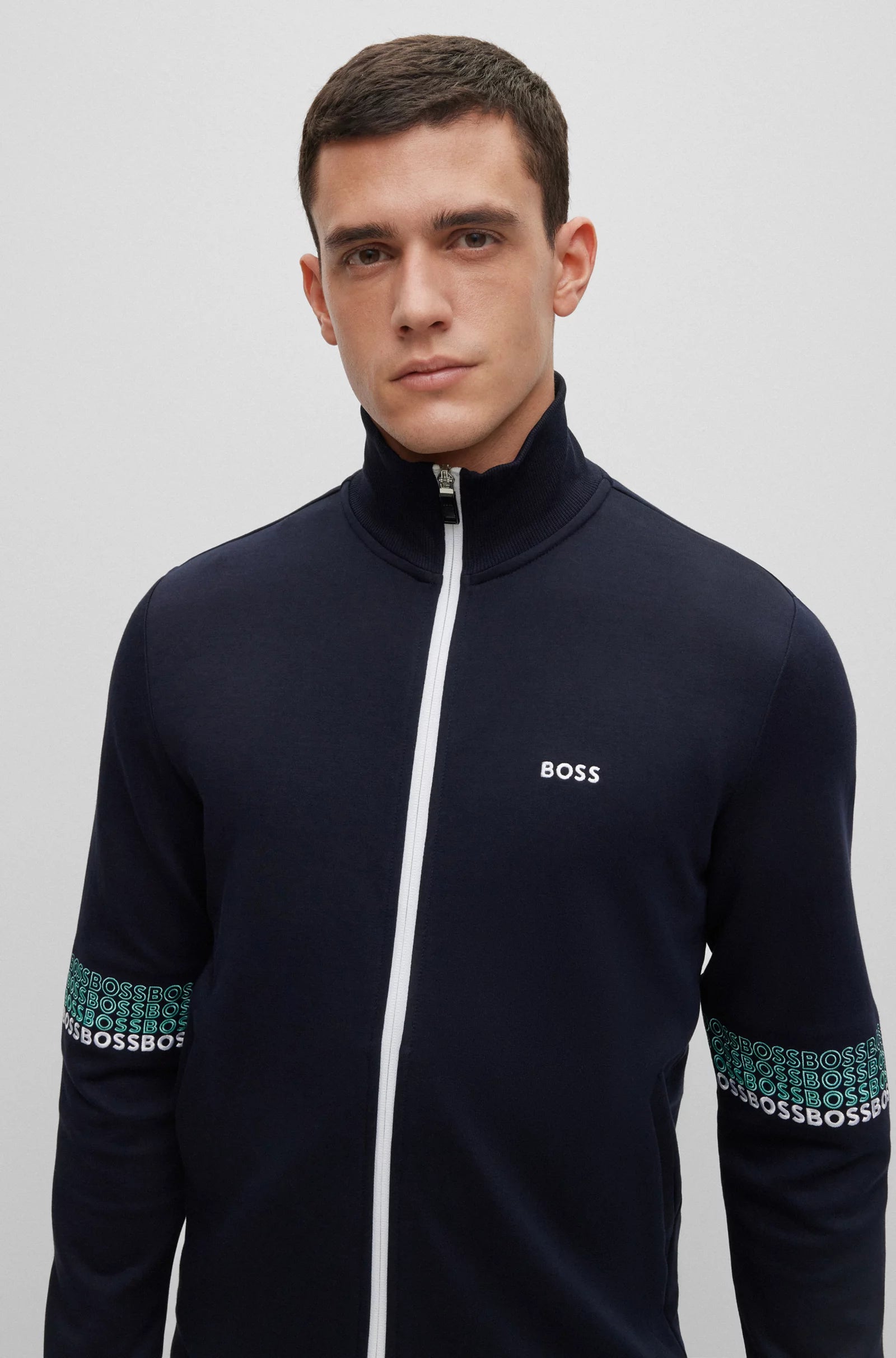 Cotton-Blend Zip-Up Sweatshirt with Multi-colored logos