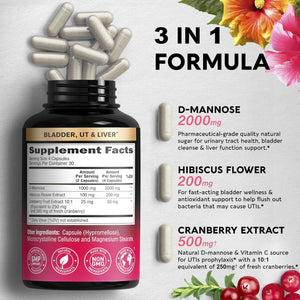 Fórmula 3 en 1 para Máxima Eficacia: Esta fórmula combina D-Mannosa con los beneficios antioxidantes del hibisco y el cranberry, ofreciendo un enfoque integral para el apoyo del bienestar urinario y general.