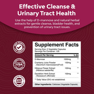 UNA combinación perfecta de D-Mannose, polvo de arándano, raíz de diente de león, MEGA FRASCO 240 CAPSULAS!!!!