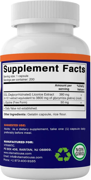 EXTRACTO DE REGALIZ 3800 MG 200 CAPSULAS VITAMATIC DGL LICORINE EXTRACT
