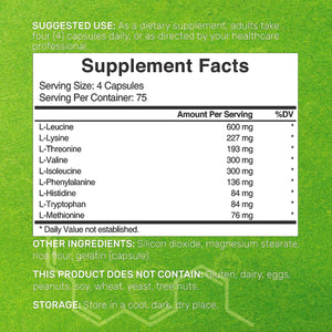 EAA + 9 AMINO ACIDOS ESENCIALES 2,000 MG CON LEUCINA 600 MG DEAL 300 CAPSULAS SIN GMO