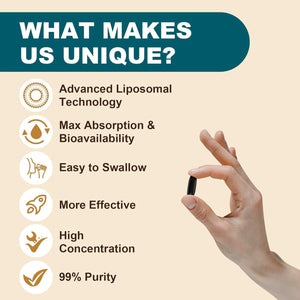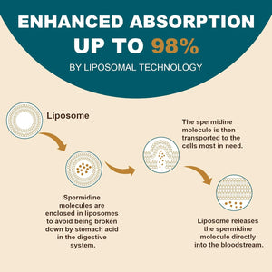 Tecnología avanzada de liposomas para máxima absorción y biodisponibilidad: no te conformes con cápsulas, polvos o tabletas mal absorbidos. Nuestros suplementos de espermidina aprovechan la tecnología avanzada de liposomas para garantizar una absorción óptima, entregando la molécula de espermidina directamente a sus células y mitocondrias. Esto garantiza que reciba los máximos beneficios de cada cápsula blanda de espermidina, proporcionando resultados óptimos para su función celular. La espermidina liposomal mejora la absorción hasta en un 98%.