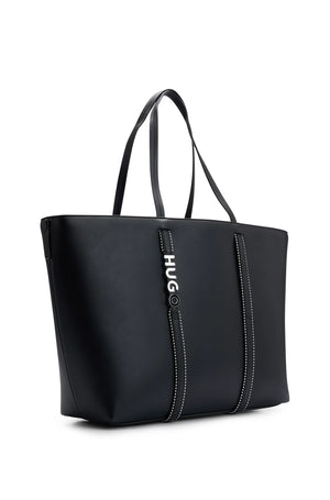 Faux Leather Shopper Bag with Logo Detail
